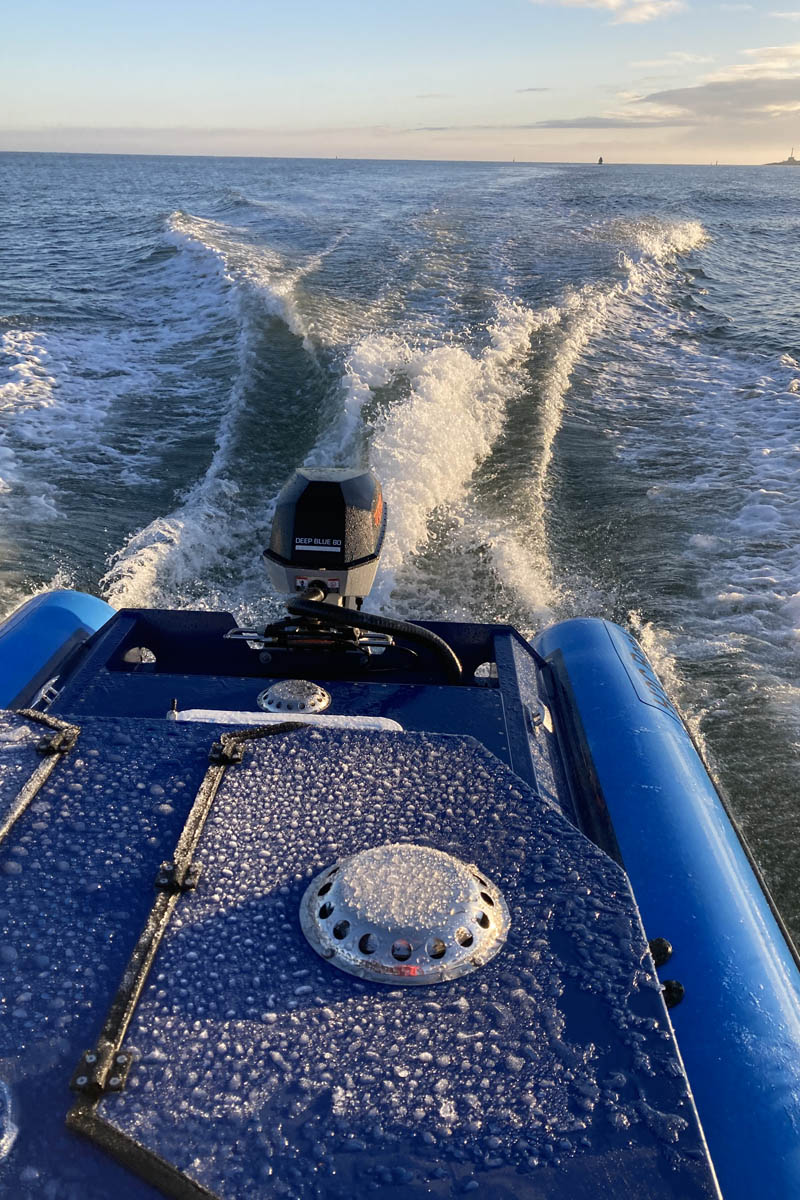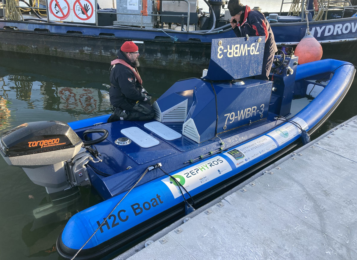 DHTC is uitgenodigd om haar kennis en expertise in de toepassingen van kleine vaartuigen los te laten op een H2C/elektrisch aangedreven RHIB in de haven van Den Helder en op de rede tussen Den Helder en Texel. Onder ijzige omstandigheden is door ons op 9 december 2022 met een snelle waterstofboot, de H2C RHIB, gevaren. DHTC instructeur Ben van Kuringen en training manager Ruud Oliemans werden door gastheer/begeleider Cees van Bladel in staat gesteld om uitgebreid te varen, te testen en te érvaren, vanaf het opstarten van de systemen voorafgaand aan ons vertrek, tot en met het brandstofladen (waterstof) na afloop.
